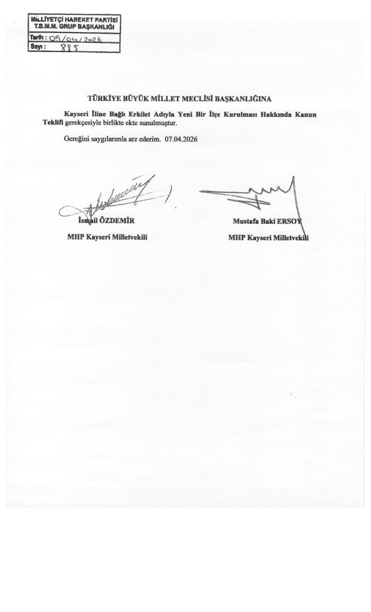MHP Kayseri Milletvekilleri İsmail Özdemir ve Baki Ersoy tarafından hazırlanan Kayseri’nin Gesi ve Erkilet bölgelerinin ilçe statüsüne kavuşturulmasını öngören kanun teklifi TBMM’ye sunuldu. Teklifte, artan nüfus, genişleyen yerleşim alanları ve kamu hizmetlerine erişimde yaşanan yoğunluk gerekçe gösterilerek, söz konusu bölgelerin müstakil birer ilçe haline getirilmesinin hizmetlerin daha etkin ve verimli sunulmasına katkı sağlayacağı ifade edildi. Kayseri’nin tarih boyunca önemli medeniyetlere ev sahipliği yaptığına dikkat çekilen teklifte, özellikle Kültepe gibi merkezlerin şehrin köklü geçmişini ortaya koyduğu vurgulandı. Bu tarihsel birikimin günümüzde artan nüfus ve ekonomik gelişimle birlikte yeni bir idari düzenlemeyi gerekli kıldığı belirtilirken, Gesi ve Erkilet bölgelerinin sahip olduğu potansiyelin altı çizildi.